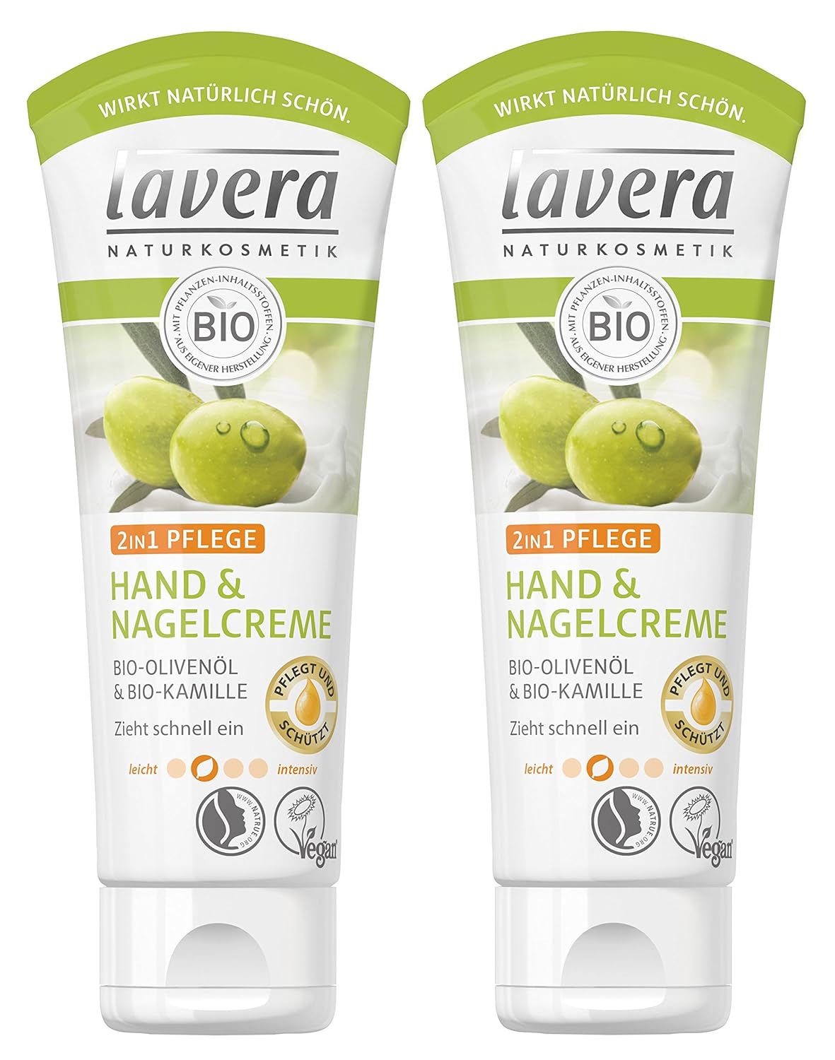 Lavera Hand & Nail Crema 2 in1 cura ∙ Bio Olio d' oliva & Bio Camomilla ∙ Crema Per Le Mani zieht veloce un ∙ Vegan ✔ Bio ✔ Natural & innovative Hand Care ✔ cosmetico naturale Confezione da (2 X 75ml)